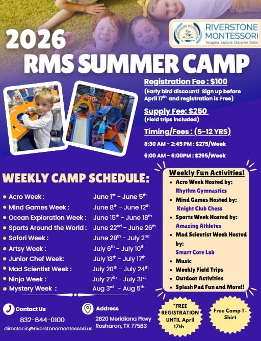 To serve the needs of our families and children, Riverstone Montessori provides morning and afternoon care throughout the school year.